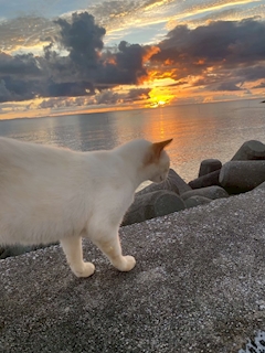 おはようございます🌞 えるです🫧🫧 相変わらず寒いですね😨 てことで夏の思い出‼️ 8月に沖縄に行った時、夕方の海辺をのんびり歩いてたら野良猫に会った😚😚😚 警戒心ゼロで近づいてきて、びっくりするくらい人懐っこい子! 他にもたくさんの種類の猫がいて心が浄化された🐈⬛ 気づいたら30分以上、 ずっと撫でてた! 可愛すぎる🫶🫶🫶🫶🫶🫶 波の音と夕焼けと猫っていう組み合わせが最高すぎた。🌅🌅 ちなみにえるは重度の猫アレルギー🤧 それでも触らずにはいられなかったくらい、忘れられない時間だった。 また来年も行きたい 🥺🥺🥺🥺