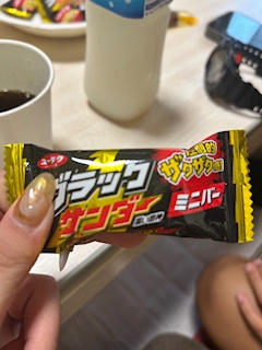 おはようございます☀️ こんにちは☀️ 今日は8時30分から出勤です!! DDでお待ちしてます!! 今日も楽しんでいこーーー✨❕ お昼ごはんのあと、ちょっと甘いもの食べたくてブラックサンダー🍫 安定の美味しさすぎて、 ついもう一個いきそうになるよね 新作とかも気になるけど、やっぱり定番もいいよねぇ 今日もいい日になるといいな°・*:.。.☆
