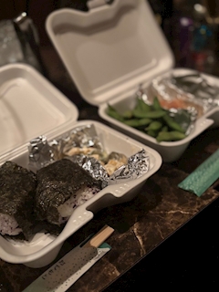 お隣の楓さんの出前🍁 色々入っててちょーどいいおつまみセット 💪( ¨̮ 💪) こないだバグっておにぎり一個半も食べたよ笑 お客様のやつを奪い取るのをやめなさい? ^_^ これ ゆかりのおにぎりなんだけど わたし別にゆかりのふりかけ好きな訳じゃないんですけどこのおにぎりめちゃ美味しい笑 なーぜなーぜ (古すぎて滅) 飲んでる時にこういうの頼んでいいよ♡とか言ってくださると女の子たちめちゃくちゃ喜ぶよ🥺 好かれるポイントかも(やかましい) おにぎり美味しかった話でした( ^_^)/ end