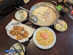 うんみゃい鍋の時期!☺️✨✨✨✨✨✨✨ ナッコプセ⸝⸝- ̫ -⸝⸝ 旨みがぎゅーーーってなってますん(๑´ڡ`๑) 🦀🐙🦐🐮帆立𓈒◌𓐍𓈒°𓈒◌𓐍𓈒 諸々🥰🤭 ほんと凄く 美味しかったなん🤤😋 「ナッコプセ」は、韓国で今とても人気の 海鮮×ホルモン×牛肉 の旨みが凝縮した、最高に贅沢な鍋(煮込み料理)です。 名前の意味から魅力まで、しっかり深掘りしますね🔥 🇰🇷 ナッコプセ(낙곱새)とは? ■ 名前の意味 ナッコプセは 3つの食材の頭文字を合わせた言葉。 낙(ナク)= 낙지(ナクジ:タコ) 곱(コプ)= 곱창(コプチャン:牛の小腸/ホルモン) 새(セ)= 새우(セウ:エビ) 👉 タコ × ホルモン × エビ の特別な煮込み料理! 釜山(プサン)が発祥で、日本でも韓国料理店やSNSを中心に人気が急上昇しています。 🍲 ナッコプセの魅力 ① とにかく“旨みの相乗効果”がすごい タコのプリプリ食感&旨み ホルモンのコクと脂の甘さ エビの海鮮だし この3つが一つの鍋に溶け合って、 濃厚で深い味わい に。 “旨味の爆弾”と言われるほど。 ② 甘辛いタレが最高にクセになる 味付けは コチュジャン 唐辛子 にんにく 醤油 を合わせた 韓国式甘辛だれ(ヤンニョム)。 海鮮とホルモンの脂が染み込んで、とんでもなく濃厚で中毒性のある味になります。 ③ ごはんと一緒に食べると無敵 ナッコプセの人気は「ご飯が止まらなくなる」点。 白米にかけて一緒に食べる 卵黄を落として混ぜる → 甘辛×旨み×濃厚で最高の韓国式丼に。 “ご飯泥棒グランプリ”があるなら確実に優勝。 ④ シメのポックンパ(炒めご飯)が至福 鍋の汁を残して 海苔 ごま油 ご飯 ネギ を入れて炒める ポックンパ が定番。 海鮮とホルモンの旨みが染み込んだ最強の締め料理です。 ⑤ 実はヘルシー&高タンパク タコ:高タンパク低脂肪 エビ:ミネラルたっぷり ホルモン:コラーゲン多め 辛味で代謝も上がり、意外と重くない料理です。 🔥 まとめ ナッコプセとは “タコ × ホルモン × エビ”を 甘辛ヤンニョムで煮込んだ、釜山発の旨み最強鍋。 魅力は 旨味の相乗効果 中毒性のある甘辛い味 ご飯との相性抜群 シメのポックンパが幸せ この4つに尽きます。 本場・釜山(プサン)での ナッコプセの食べ方 は、日本で食べるより“もっと豪快で、もっとご飯が主役”のスタイルです。 韓国現地での流儀を、分かりやすく深掘りして説明しますね🔥 🇰🇷 本場・釜山のナッコプセの食べ方 ① まず混ぜる(最重要) 釜山式は 鍋をぜんぶ混ぜてから食べる が基本。 タコ・ホルモン・エビ・野菜・ヤンニョムをしっかり絡めることで、旨みが均一になります。 ▶ ポイント 混ぜるとホルモンの脂が溶けて全体のコクが倍に タコは軽く火が入るとプリプリに エビの旨味がソースに溶け込む ② “ごはんにのせて食べる”のが本場スタイル ナッコプセは 鍋料理というより“ご飯のおかず”。 ▶ 現地式の食べ方 ステンレスのどんぶりにご飯をよそう ナッコプセを具ごと豪快にのせる 最後に 卵黄を落とす(人気店の定番) よく混ぜて食べる 👉 ぶっかけ丼スタイルが正解! 甘辛×旨み×ごま油の香りでご飯が無限に進みます。 ③ 途中で“チーズトッピング”も人気 韓国では、 モッツァレラ チェダー とろけるチーズ などを追加して、コクを出す食べ方が定番化。 特に若者の間では“とろ〜りチーズナッコプセ”が大人気。 **④ しっかり食べたら…いよいよ名物シメ! → ポックンパ(炒めご飯)へ** 本場では必ずといっていいほど ポックンパ(볶음밥) を作ります。 ▶ 作り方はお店スタッフがやってくれることが多い 鍋に残ったタレ・具の欠片を強火に 白米を投入 韓国海苔(刻み海苔)を加える ごま油を回しかける ネギ or とびこを入れて炒める店も 最後に丸く形を整えるのが定番 👉 旨みを吸い切った“究極の締め飯”。 これを食べてこそナッコプセは完成。 ⑤ 味の調整も自由 韓国では卓上に 追加ソース(ヤンニョム) ごま油 青唐辛子 キムチ などが置かれていて、自分好みの辛さ・濃さにできます。 🔥 まとめ:釜山の本場式は“豪快に混ぜる・ご飯にのせる・ポックンパで締める” まず全部よく混ぜる ご飯の上にたっぷりのせる 卵黄を落とす チーズを足して味変 最後はポックンパで締める 食べるほどに味が濃くなり、最後まで飽きないのが本場式の魅力です。 締めの ごはん 乾麺 両方入れたいとか 言ってしまったれみ🤣🤣🤣🤣🤣 乾麺にしましたが 本当に正解( •̀∀•́ )b チーズと卵も入れて スープが、 麺に絡みます( •̀∀•́ )b🍀*゜ 最高でした👍😭👏✨ れみ